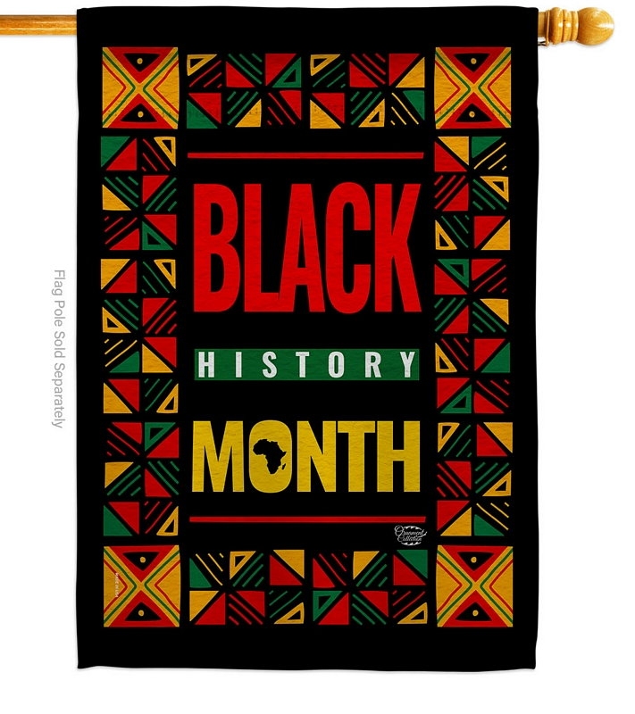 The African American History Month House Flag is a double-sided 28" x 40" house flag designed to be displayed outdoors year-round. Printed on weather-resistant polyester, the flag reads correctly from both approaches so the design works on a yard walkway, a garden bed, or a porch railing. It fits every standard 6-foot house flagpole on the market.