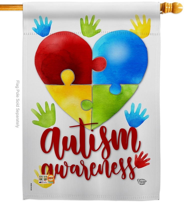 The Autism Awareness House Flag is a double-sided 28" x 40" house flag designed to be displayed outdoors year-round. Printed on weather-resistant polyester, the flag reads correctly from both approaches so the design works on a yard walkway, a garden bed, or a porch railing. It fits every standard 6-foot house flagpole on the market.