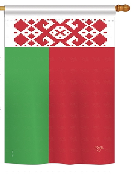 The Belarus House Flag is a double-sided 28" x 40" house flag designed to be displayed outdoors year-round. Printed on weather-resistant polyester, the flag reads correctly from both approaches so the design works on a yard walkway, a garden bed, or a porch railing. It fits every standard 6-foot house flagpole on the market.