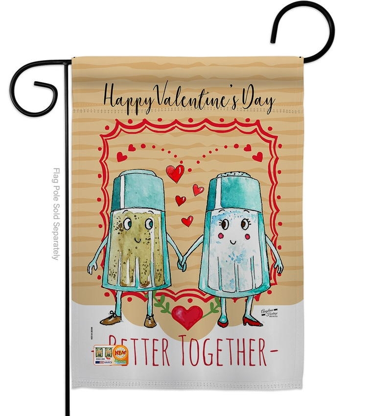 The Better Together Garden Flag is a double-sided 12.5" x 18" garden flag designed to be displayed outdoors year-round. Printed on weather-resistant polyester, the flag reads correctly from both approaches so the design works on a yard walkway, a garden bed, or a porch railing. It fits every standard 40"–46" garden flag stand on the market.