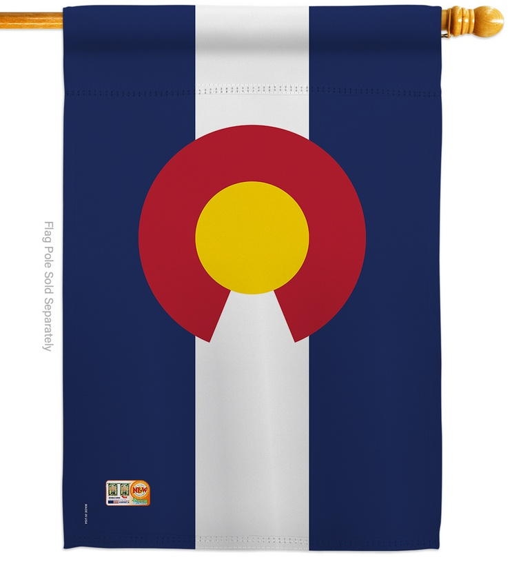 The Colorado Decorative House Flag is a double-sided 28" x 40" house flag designed to be displayed outdoors year-round. Printed on weather-resistant polyester, the flag reads correctly from both approaches so the design works on a yard walkway, a garden bed, or a porch railing. It fits every standard 6-foot house flagpole on the market.