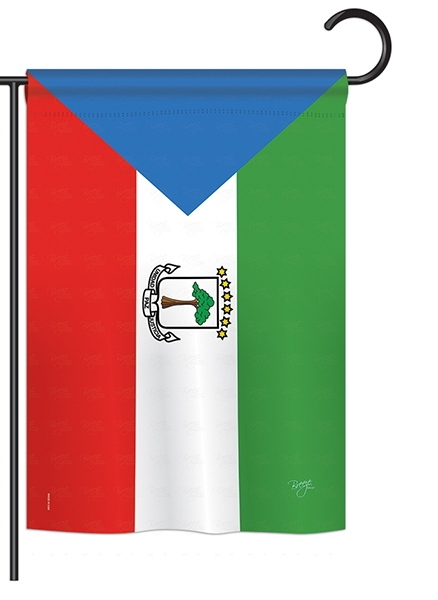 The Equatorial Guinea Garden Flag is a double-sided 12.5" x 18" garden flag designed to be displayed outdoors year-round. Printed on weather-resistant polyester, the flag reads correctly from both approaches so the design works on a yard walkway, a garden bed, or a porch railing. It fits every standard 40"–46" garden flag stand on the market.