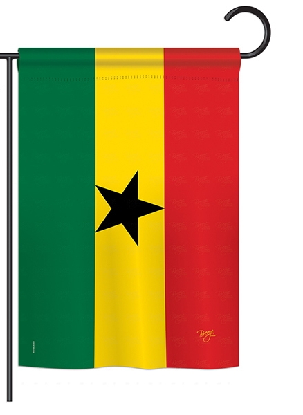 The Ghana Garden Flag is a double-sided 12.5" x 18" garden flag designed to be displayed outdoors year-round. Printed on weather-resistant polyester, the flag reads correctly from both approaches so the design works on a yard walkway, a garden bed, or a porch railing. It fits every standard 40"–46" garden flag stand on the market.