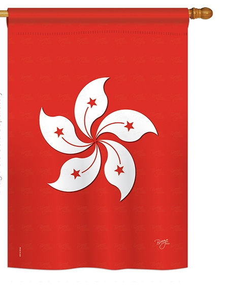 The Hong Kong House Flag is a double-sided 28" x 40" house flag designed to be displayed outdoors year-round. Printed on weather-resistant polyester, the flag reads correctly from both approaches so the design works on a yard walkway, a garden bed, or a porch railing. It fits every standard 6-foot house flagpole on the market.