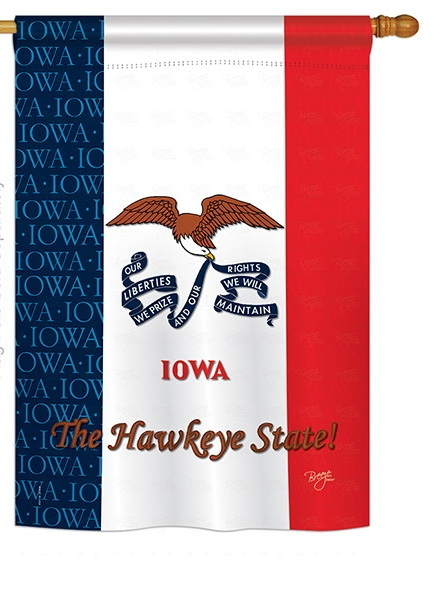 The Iowa House Flag is a double-sided 28" x 40" house flag designed to be displayed outdoors year-round. Printed on weather-resistant polyester, the flag reads correctly from both approaches so the design works on a yard walkway, a garden bed, or a porch railing. It fits every standard 6-foot house flagpole on the market.