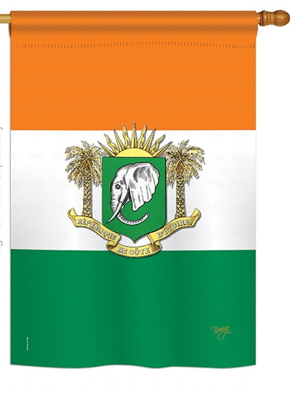 The Ivory Coast House Flag is a double-sided 28" x 40" house flag designed to be displayed outdoors year-round. Printed on weather-resistant polyester, the flag reads correctly from both approaches so the design works on a yard walkway, a garden bed, or a porch railing. It fits every standard 6-foot house flagpole on the market.