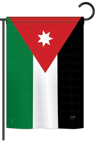 The Jordan Garden Flag is a double-sided 12.5" x 18" garden flag designed to be displayed outdoors year-round. Printed on weather-resistant polyester, the flag reads correctly from both approaches so the design works on a yard walkway, a garden bed, or a porch railing. It fits every standard 40"–46" garden flag stand on the market.