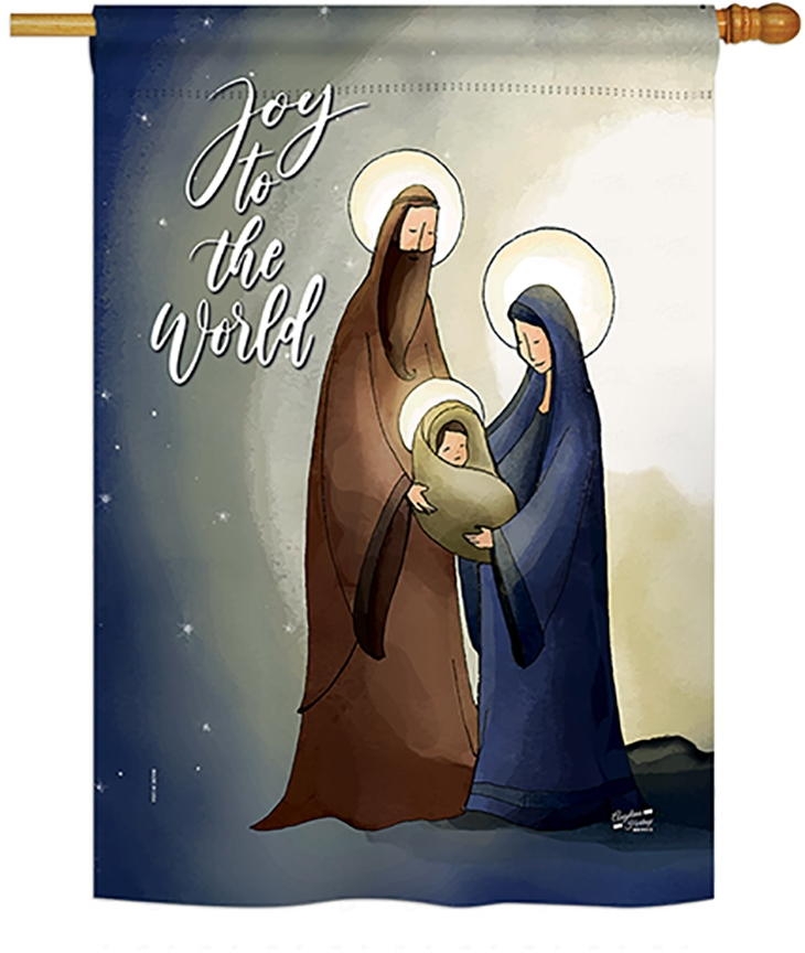The Joy To The World House Flag is a double-sided 28" x 40" house flag designed to be displayed outdoors year-round. Printed on weather-resistant polyester, the flag reads correctly from both approaches so the design works on a yard walkway, a garden bed, or a porch railing. It fits every standard 6-foot house flagpole on the market.
