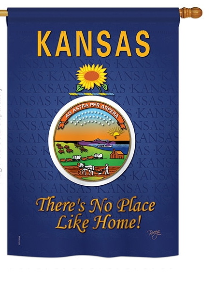 The Kansas House Flag is a double-sided 28" x 40" house flag designed to be displayed outdoors year-round. Printed on weather-resistant polyester, the flag reads correctly from both approaches so the design works on a yard walkway, a garden bed, or a porch railing. It fits every standard 6-foot house flagpole on the market.