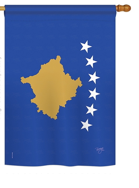The Kosovo House Flag is a double-sided 28" x 40" house flag designed to be displayed outdoors year-round. Printed on weather-resistant polyester, the flag reads correctly from both approaches so the design works on a yard walkway, a garden bed, or a porch railing. It fits every standard 6-foot house flagpole on the market.