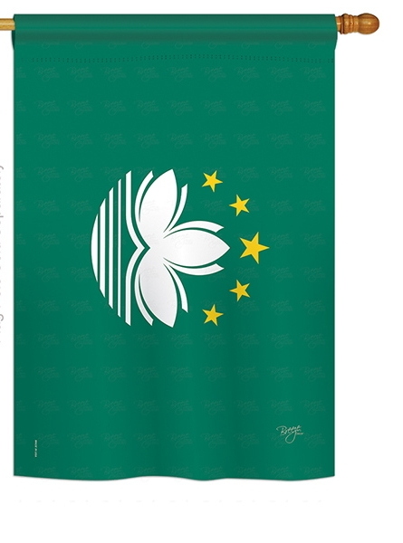 The Macao House Flag is a double-sided 28" x 40" house flag designed to be displayed outdoors year-round. Printed on weather-resistant polyester, the flag reads correctly from both approaches so the design works on a yard walkway, a garden bed, or a porch railing. It fits every standard 6-foot house flagpole on the market.