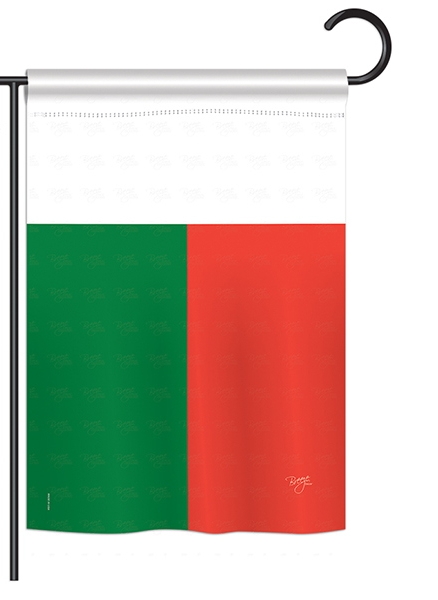 The Madagascar Garden Flag is a 12.5" x 18" garden flag, the standard size that fits every garden flag stand and house flagpole on the market. See our garden flag size guide for the measurements that matter.