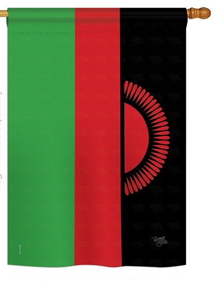 The Malawi House Flag is a double-sided 28" x 40" house flag designed to be displayed outdoors year-round. Printed on weather-resistant polyester, the flag reads correctly from both approaches so the design works on a yard walkway, a garden bed, or a porch railing. It fits every standard 6-foot house flagpole on the market.