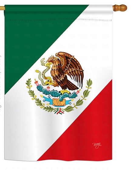 The Mexico House Flag is a double-sided 28" x 40" house flag designed to be displayed outdoors year-round. Printed on weather-resistant polyester, the flag reads correctly from both approaches so the design works on a yard walkway, a garden bed, or a porch railing. It fits every standard 6-foot house flagpole on the market.