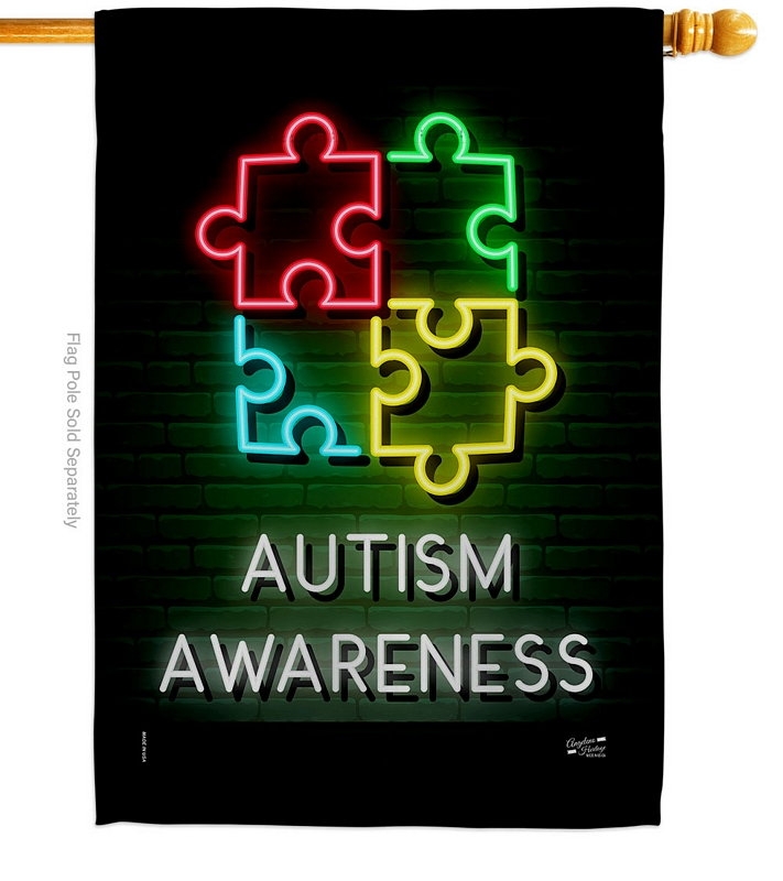 The Neon Autism House Flag is a double-sided 28" x 40" house flag designed to be displayed outdoors year-round. Printed on weather-resistant polyester, the flag reads correctly from both approaches so the design works on a yard walkway, a garden bed, or a porch railing. It fits every standard 6-foot house flagpole on the market.