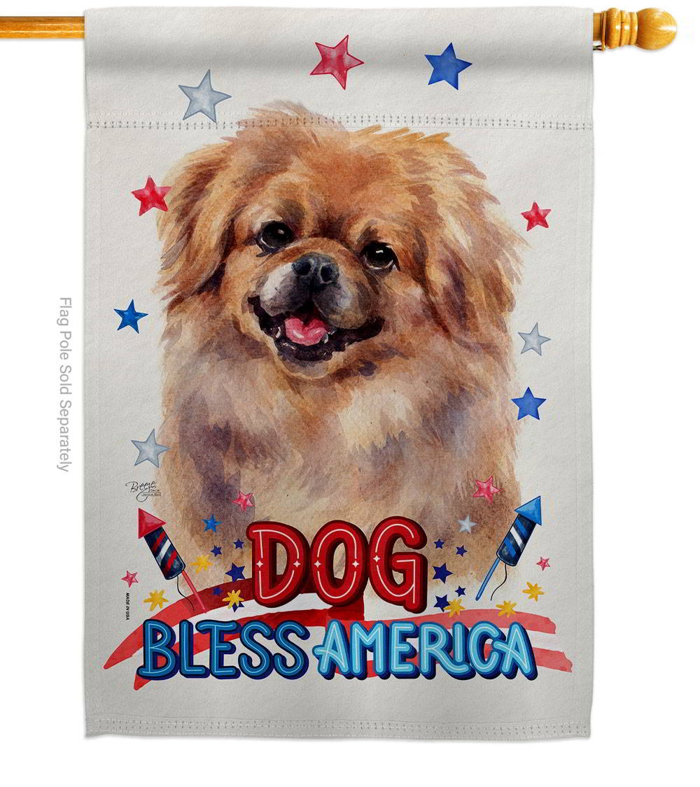 The Patriotic Pekingese House Flag is a double-sided 28" x 40" house flag designed to be displayed outdoors year-round. Printed on weather-resistant polyester, the flag reads correctly from both approaches so the design works on a yard walkway, a garden bed, or a porch railing. It fits every standard 6-foot house flagpole on the market.