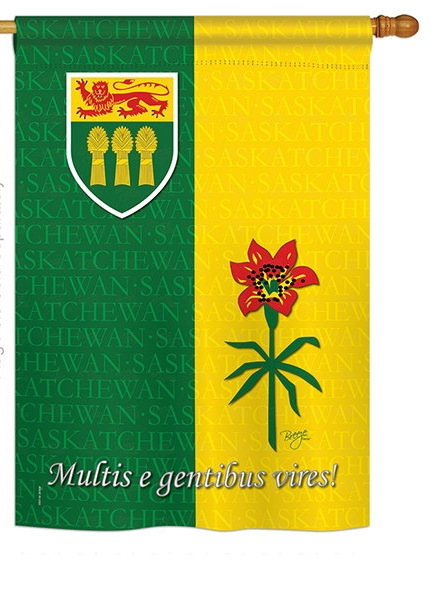 The Saskatchewan House Flag is a double-sided 28" x 40" house flag designed to be displayed outdoors year-round. Printed on weather-resistant polyester, the flag reads correctly from both approaches so the design works on a yard walkway, a garden bed, or a porch railing. It fits every standard 6-foot house flagpole on the market.