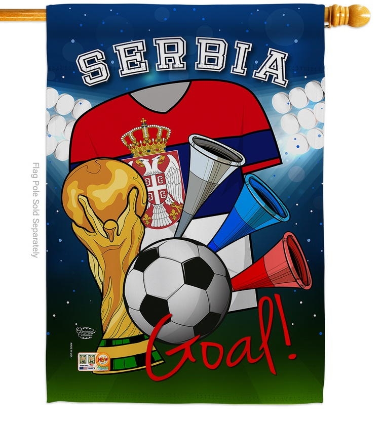 The Serbia Soccer House Flag is a 28" x 40" house flag, the standard size that fits every garden flag stand and house flagpole on the market. See our garden flag size guide for the measurements that matter.