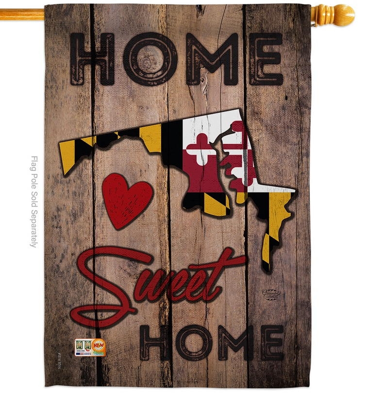 The State Maryland Home Sweet House Flag is a double-sided 28" x 40" house flag designed to be displayed outdoors year-round. Printed on weather-resistant polyester, the flag reads correctly from both approaches so the design works on a yard walkway, a garden bed, or a porch railing. It fits every standard 6-foot house flagpole on the market.