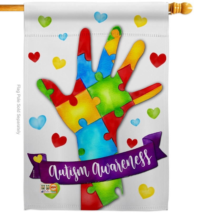 The Support Autism House Flag is a double-sided 28" x 40" house flag designed to be displayed outdoors year-round. Printed on weather-resistant polyester, the flag reads correctly from both approaches so the design works on a yard walkway, a garden bed, or a porch railing. It fits every standard 6-foot house flagpole on the market.