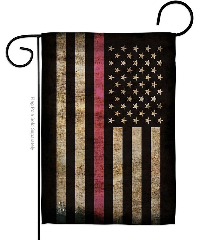 The Garden-Flags.com editorial team reviews every flag listed on the site for print quality, stitch integrity, and colorfastness. The Thin Pink Line Garden Flag earns its place because the 12.5" x 18" double-sided print holds up through a full season of sun and light rain, and the design reads cleanly from both sides — the single most common complaint about cheap single-sided alternatives. For best results, pair it with a wind-resistant stand and a stopper, and rotate it off the pole during sustained storms. If your HOA restricts flag displays, see our HOA rules guide before hanging.