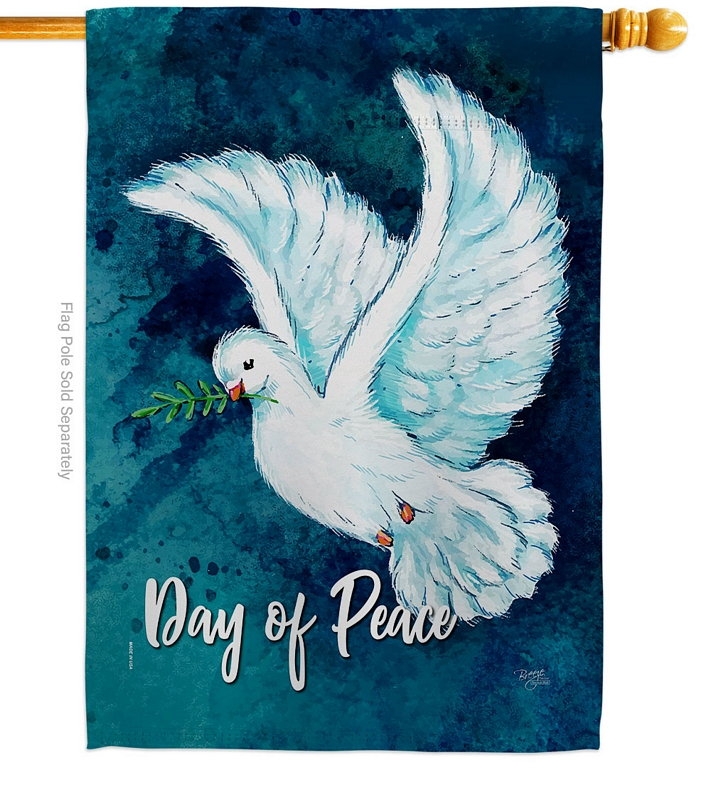 The Together For Peace House Flag is a 28" x 40" house flag, the standard size that fits every garden flag stand and house flagpole on the market. See our garden flag size guide for the measurements that matter.