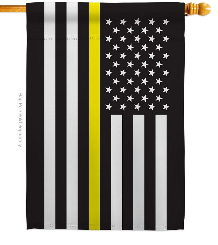 The US Thin Yellow Line House Flag is a double-sided 28" x 40" house flag designed to be displayed outdoors year-round. Printed on weather-resistant polyester, the flag reads correctly from both approaches so the design works on a yard walkway, a garden bed, or a porch railing. It fits every standard 6-foot house flagpole on the market.