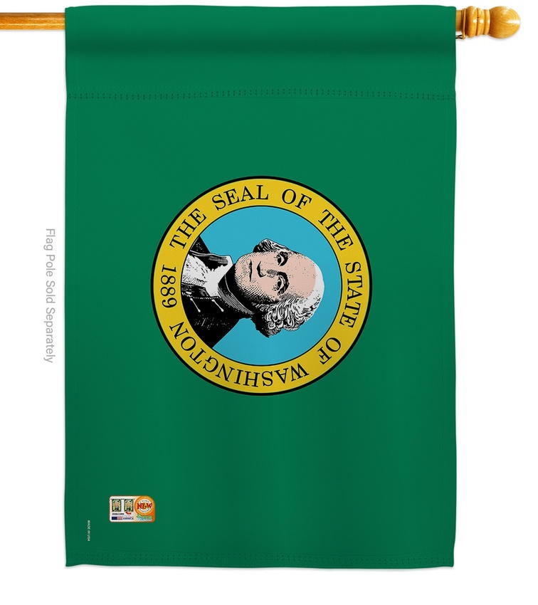 The Washington Decorative House Flag is a double-sided 28" x 40" house flag designed to be displayed outdoors year-round. Printed on weather-resistant polyester, the flag reads correctly from both approaches so the design works on a yard walkway, a garden bed, or a porch railing. It fits every standard 6-foot house flagpole on the market.