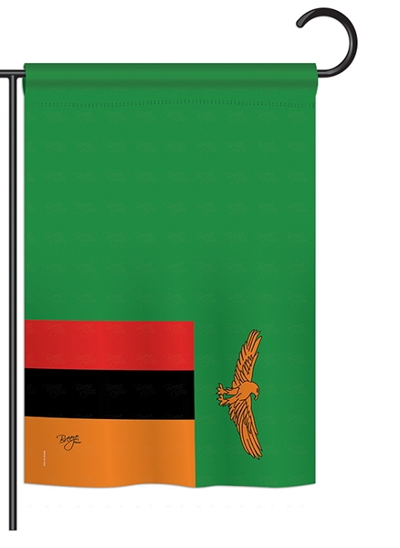 The Zambia Garden Flag is a double-sided 12.5" x 18" garden flag designed to be displayed outdoors year-round. Printed on weather-resistant polyester, the flag reads correctly from both approaches so the design works on a yard walkway, a garden bed, or a porch railing. It fits every standard 40"–46" garden flag stand on the market.